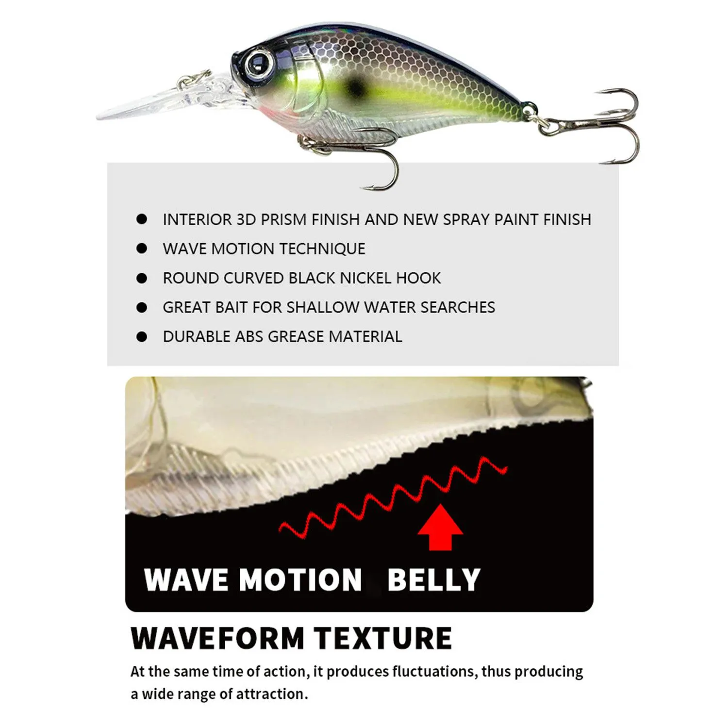 - 【Robustness of ABS Material】 The body of FLAT’s crankbaits for bass, which is used in freshwater, is constructed from high-strength ABS. This not only preserves the sturdiness of the fishing lures but also empowers the crankbait to skillfully glide through timber, rocks, and other impediments with enhanced proficiency.