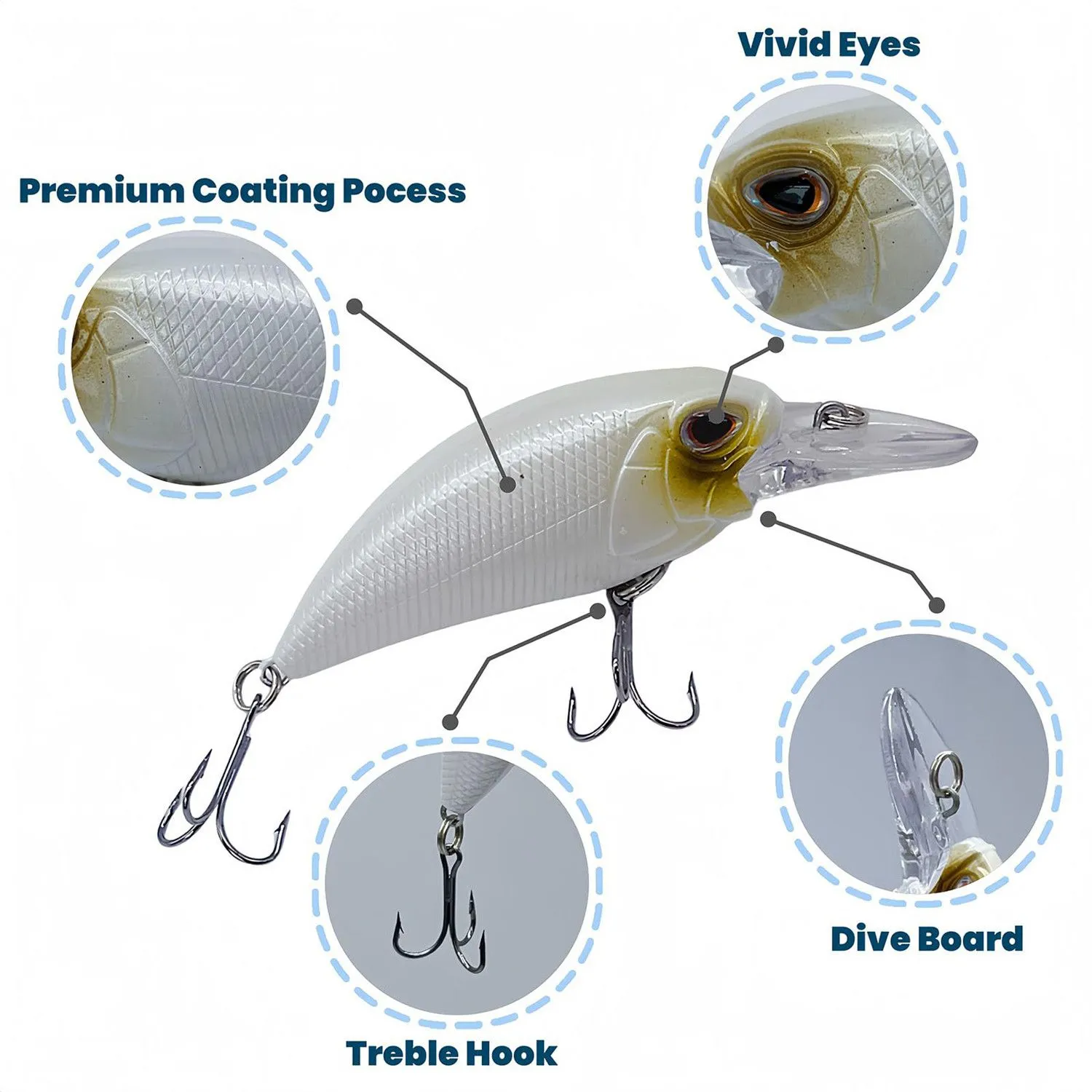 Topwater Lures with Treble Hooks 3D Eyes for Bass Trout Freshwater and Saltwater