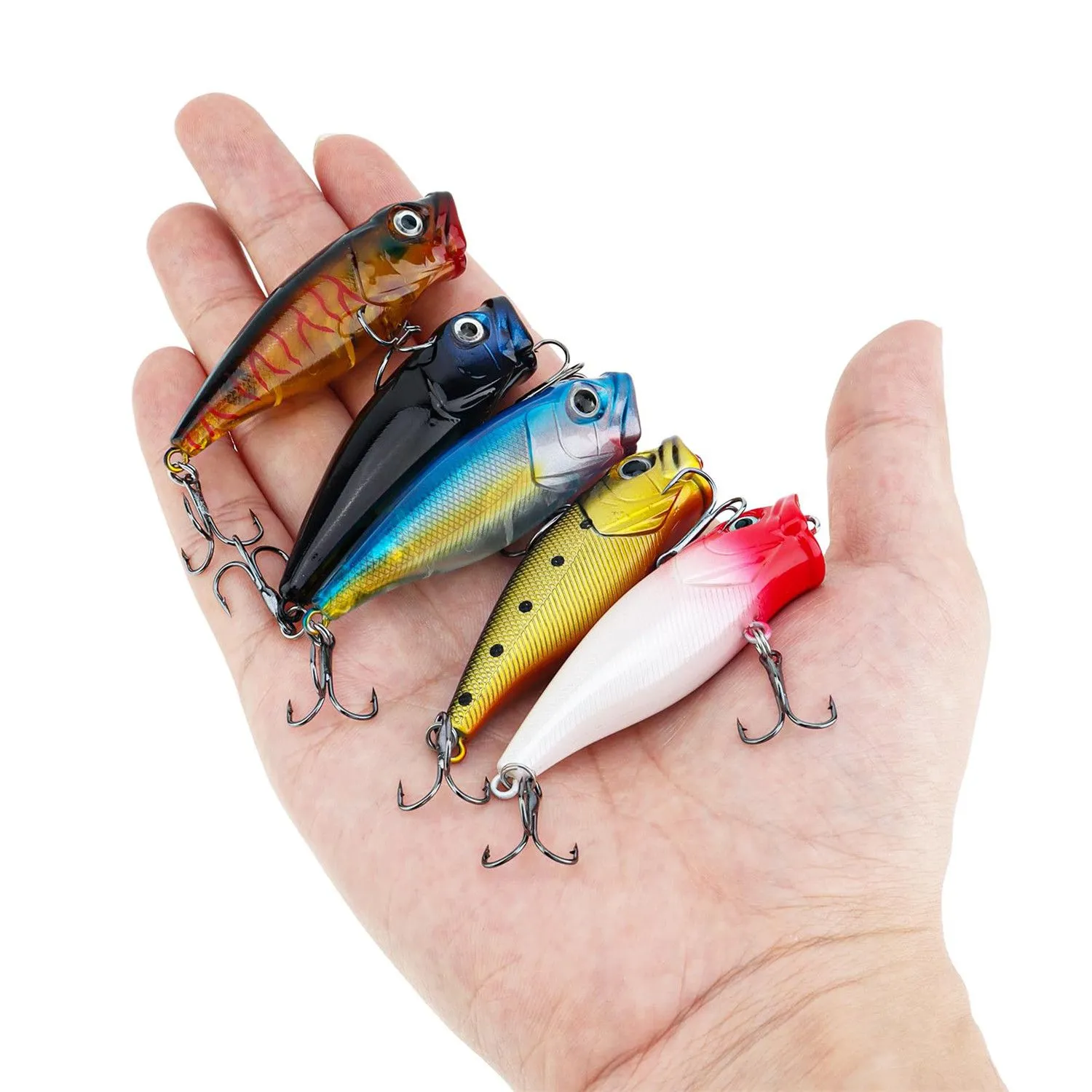 • Tailored for Bass Fishing Excellence – Available in 5 distinct colors, our topwater popper lures are specifically crafted to meet the demands of bass fishing. The ultra-sharp treble hooks are strategically placed to ensure a firm hold on any bass that strikes, preventing them from escaping and guaranteeing a rewarding fishing experience.
