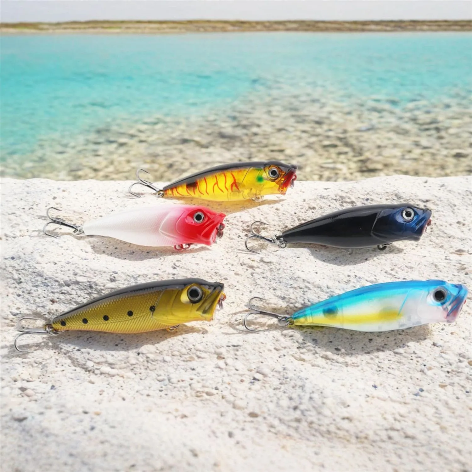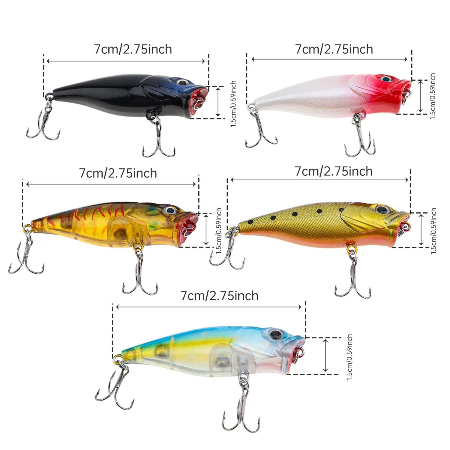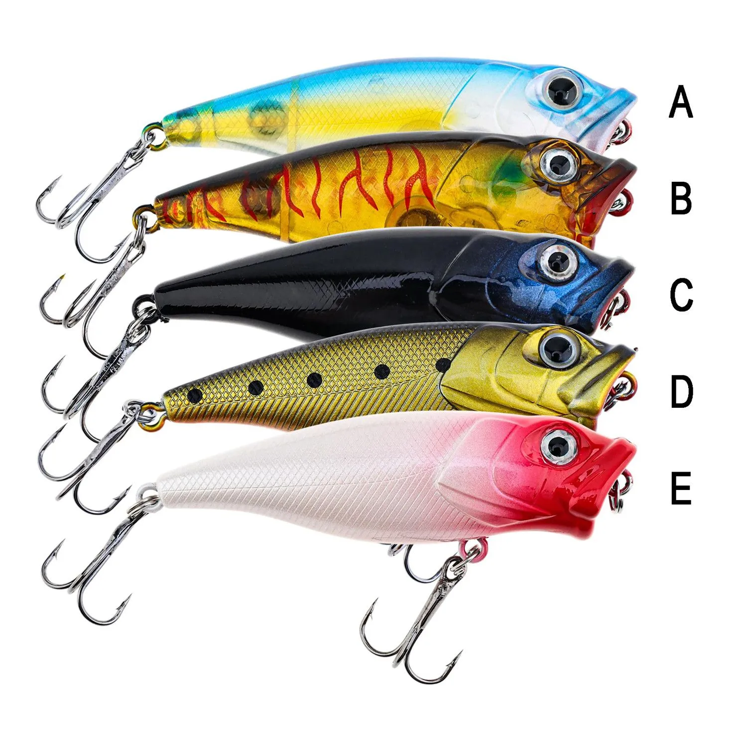 • Exceptionally Lifelike Design – The popper lure features vivid 3D eyes that seem to follow the movements around them, textured scales that mimic the feel of a real fish, and detailed gills and fins that add to its authenticity. This level of realism makes it irresistible to predatory fish, increasing your chances of a successful catch.