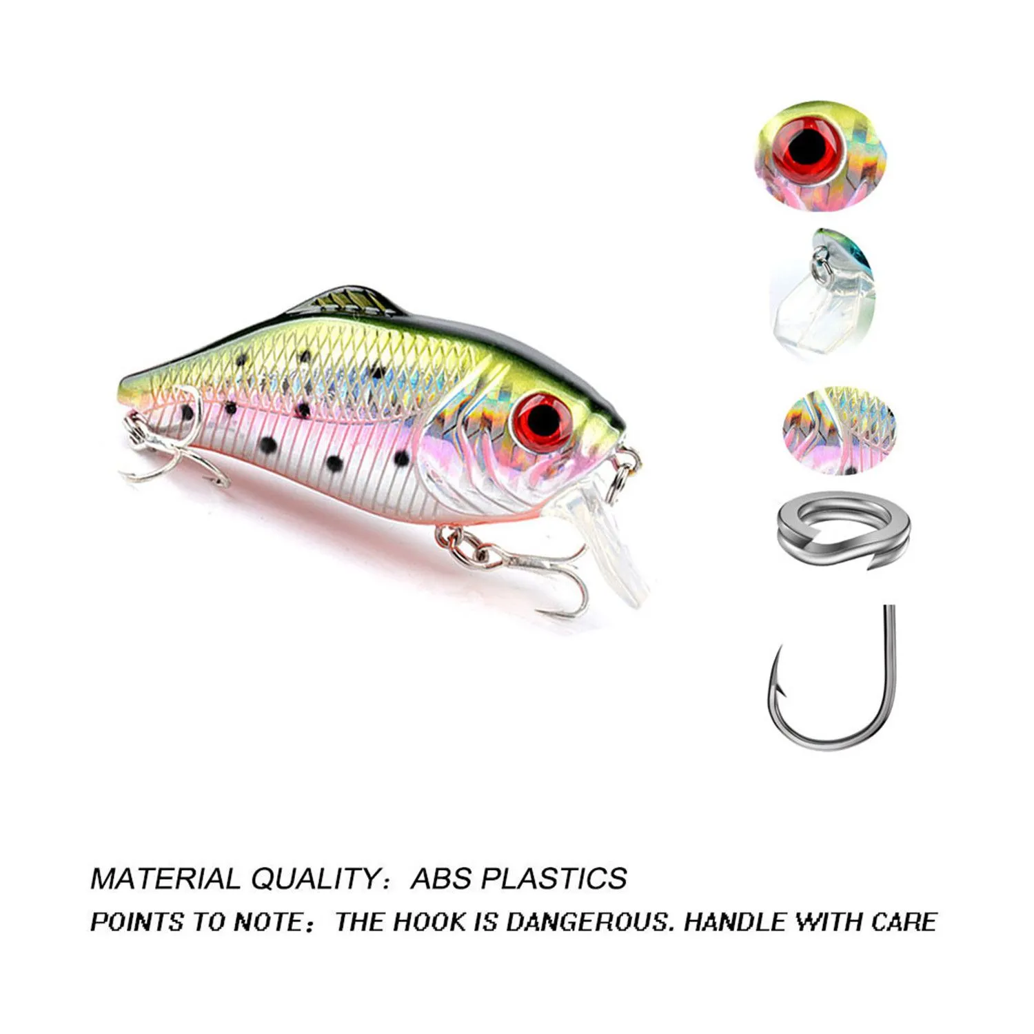 - SUPERIOR QUALITY COMPONENTS The 3.07-ounce Shallow Running Crankbaits is outfitted with razor-sharp size 8 treble hooks. These hooks possess outstanding penetration capabilities, ensuring that once a fish makes a move, it gets firmly hooked. Their excellent holding power means that even the most feisty fish will have a hard time escaping. The reflective 3D eyes are a clever addition, designed to deceive the most cautious bass, especially in clear water conditions where visibility is high. The chip-resistant finish is a practical feature, allowing the lure to fearlessly venture into rocky areas and collide with hard structures without losing its meticulously detailed color pattern, maintaining its allure and effectiveness throughout multiple fishing trips.
