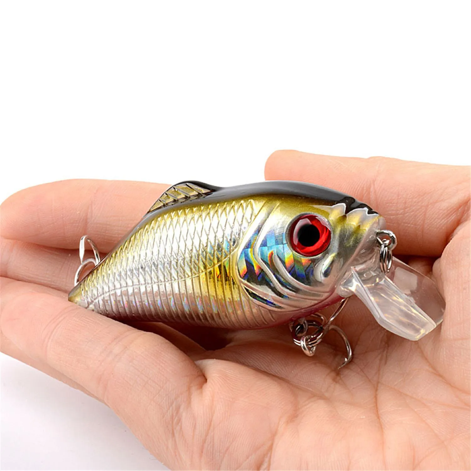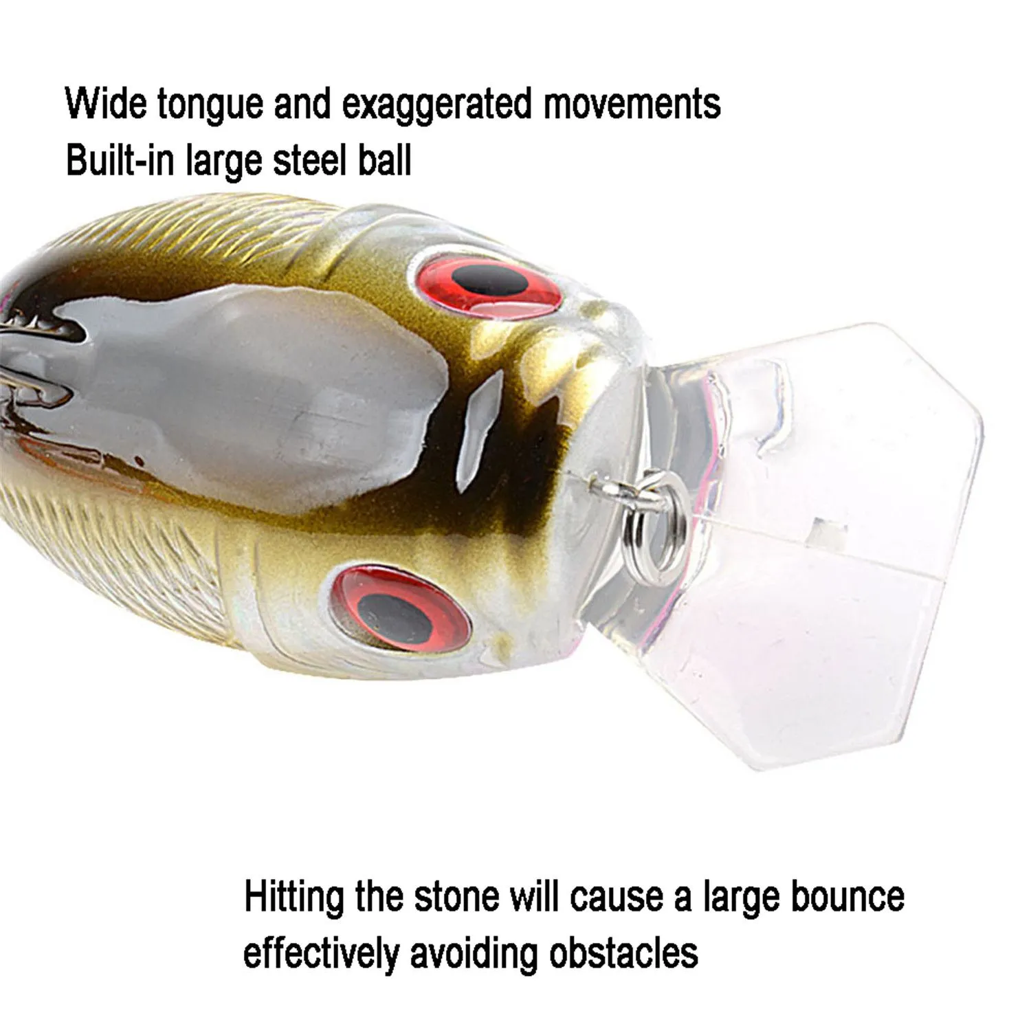- ADAPTABLE AND VERSATILE APPLICATION While initially crafted with fishing around grassy areas in mind, the Shallow Running Crankbaits has proven its worth in a multitude of environments. Whether it’s thick vegetation, wooden structures, or rocky terrain, this lure has demonstrated its ability to consistently catch fish. Its versatility is a standout characteristic, as it can be fished in various ways. It performs admirably when used like a traditional crankbait, with a steady retrieve that entices fish with its wobbling action. It can also mimic the erratic movements of a jerkbait, or even function as a shallow diving topwater wakebait, creating a disturbance on the surface that attracts fish. Additionally, when yanked out of grassy areas, it behaves like a lipless lure, generating a sudden burst of action that often triggers strikes. Truly, the Shallow Running Crankbaits combines the best features of multiple lure types, making it a flexible and effective tool in any angler’s arsenal.